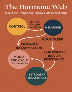 These hormones don’t work in isolation. When even one of these goes off, the others often follow. Hormones operate in an interconnected system—like a web. Disrupt one, and you create imbalances elsewhere.